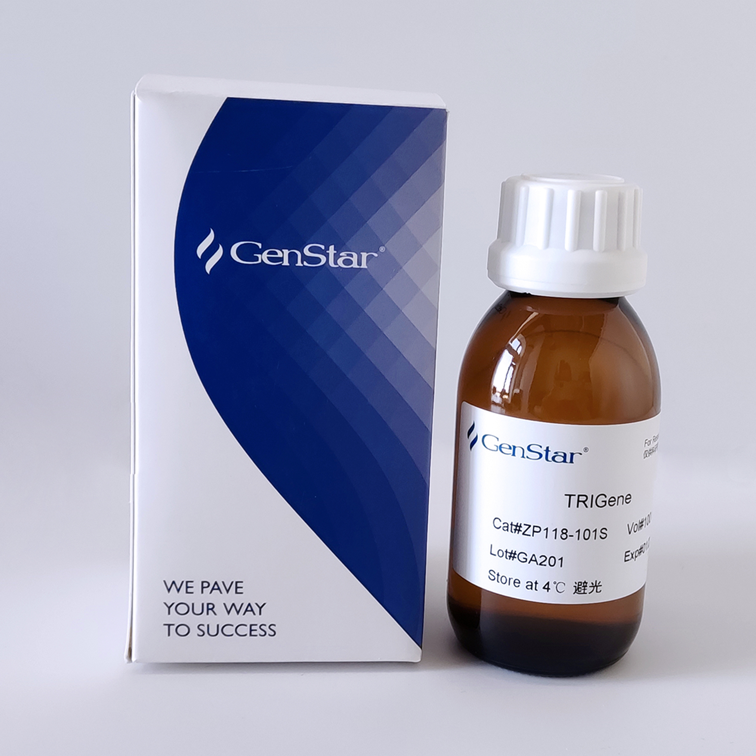 TRIGene 是基于 TriZol 原理制備的一種通用總 RNA 提取試劑。該方法簡(jiǎn)便、快捷,適用于動(dòng)植物細(xì)胞、組織、酵母細(xì)胞以及細(xì)菌的總 RNA 抽提。其原理是利用異硫氫酸胍/酚/氯仿法,快速裂解細(xì)胞,溶解細(xì)胞內(nèi)含物,抑制核酸酶活性,從而有效防止 RNA 在提取過程中的降解。加入氯仿后,溶液分為水相和有機(jī)相。RNA 保留在上層水相中,分離后可用異丙醇沉淀回收。TRIGene 提取的總 RNA 產(chǎn)量大、純度高,無基因組 DNA 和蛋白質(zhì)污染,可直接用于 RT-PCR、Northern blot、dot blot、polyA 篩選、體外翻譯、RNase 保護(hù)實(shí)驗(yàn)和分子克隆等一系列操作。