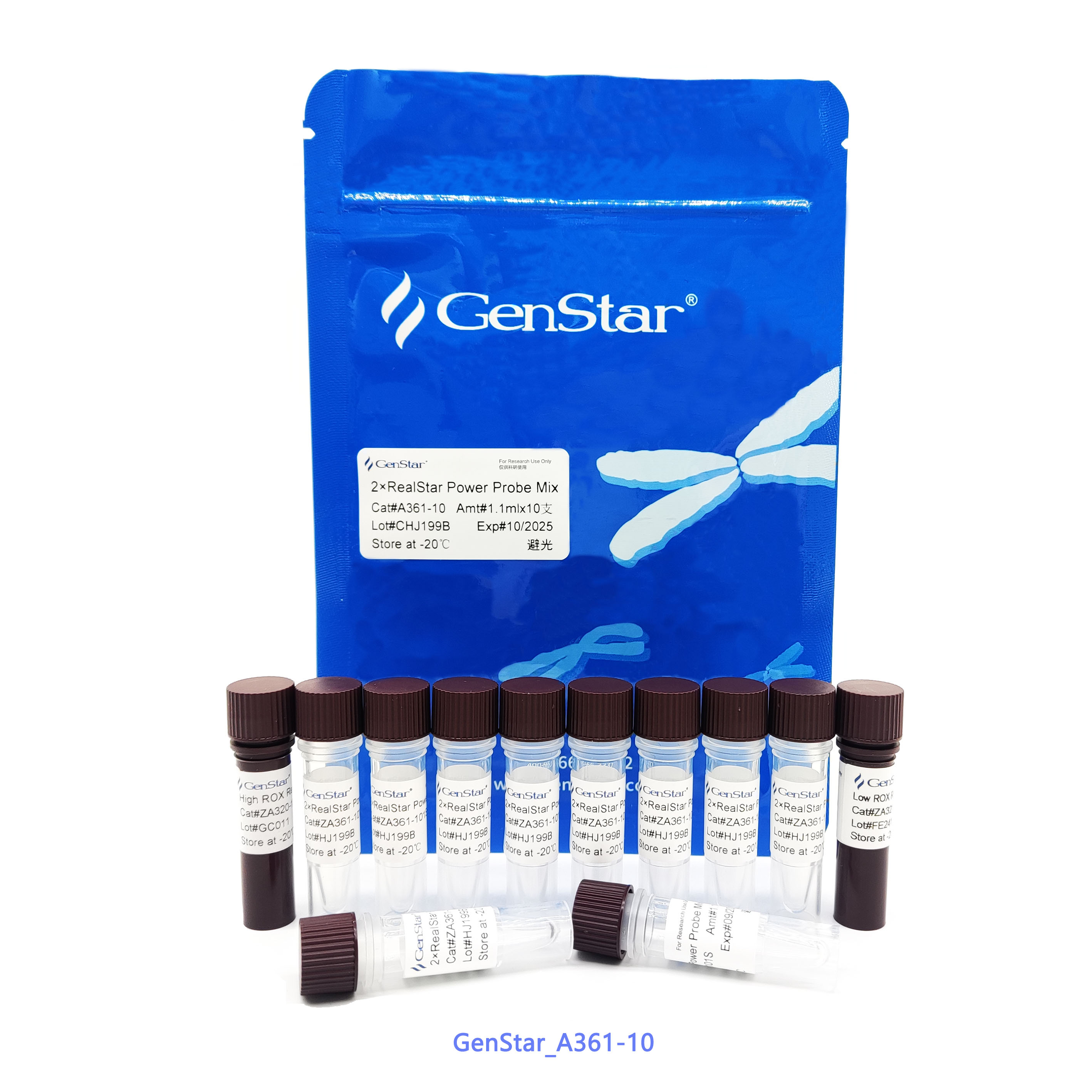 本產(chǎn)品是專用于探針法(TaqMan,Molecular Beacon 等)實(shí)時(shí)熒光定量的預(yù)混體系。產(chǎn)品含有優(yōu)化濃度的 GenStar Power HSTaq DNA Polymerase、dNTPs、Mg2+、反應(yīng)緩沖液和穩(wěn)定劑等成分。Power HSTaq DNA Polymerase 在 75℃ 以下沒有活性,從而有效避免在常溫條件下由引物和模板非特異性結(jié)合或引物二聚體而產(chǎn)生的非特異性擴(kuò)增,酶的激活需要 95℃ 孵育 10 min。反應(yīng)體系可在室溫下配制,無需在冰上完成,操作方便。主要用于基因組 DNA 靶序列和 RNA 反轉(zhuǎn)錄后 cDNA 靶序列的檢測,如基因表達(dá)分析、拷貝數(shù)分析、SNP 基因型分析等,適用于不同類型探針法熒光定量 PCR。