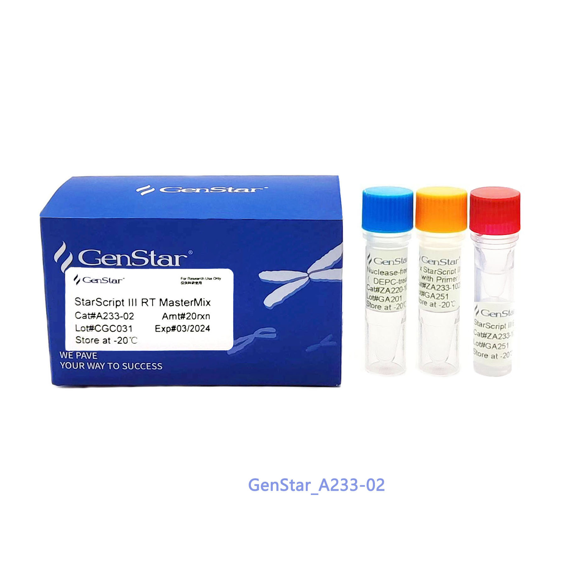 本產(chǎn)品是基于 StarScript III 反轉(zhuǎn)錄酶開發(fā)的 cDNA 第一鏈合成的預(yù)混試劑。StarScript III 反轉(zhuǎn)錄酶比 StarScript II 反轉(zhuǎn)錄酶具有更高的熱穩(wěn)定性,對于復(fù)雜二級結(jié)構(gòu)和高 GC 含量靶標(biāo),可將逆轉(zhuǎn)錄溫度提高至 55-60℃,克服 RNA 復(fù)雜二級結(jié)構(gòu)對 cDNA 合成的抑制,有效合成高質(zhì)量的 cDNA;同時,StarScript III 反轉(zhuǎn)錄酶 cDNA 合成能力更高,非常適合少量模板以及低拷貝基因的逆轉(zhuǎn)錄。本產(chǎn)品提供便捷的預(yù)混試劑,2×StarScript III Buffer(with Primer)包含優(yōu)化的緩沖體系、dNTPs,并預(yù)混了 Random Primer 和 Oligo18 (dT);StarScript III RT Mix 包含比例優(yōu)化的 StarScript III 反轉(zhuǎn)錄酶、RNase inhibitor,可以從極低量的總 RNA 或 poly(A) mRNA 合成第一鏈 cDNA,合成的單鏈 cDNA 產(chǎn)物可直接用來進(jìn)行后續(xù) PCR 或者 qPCR 反應(yīng)。