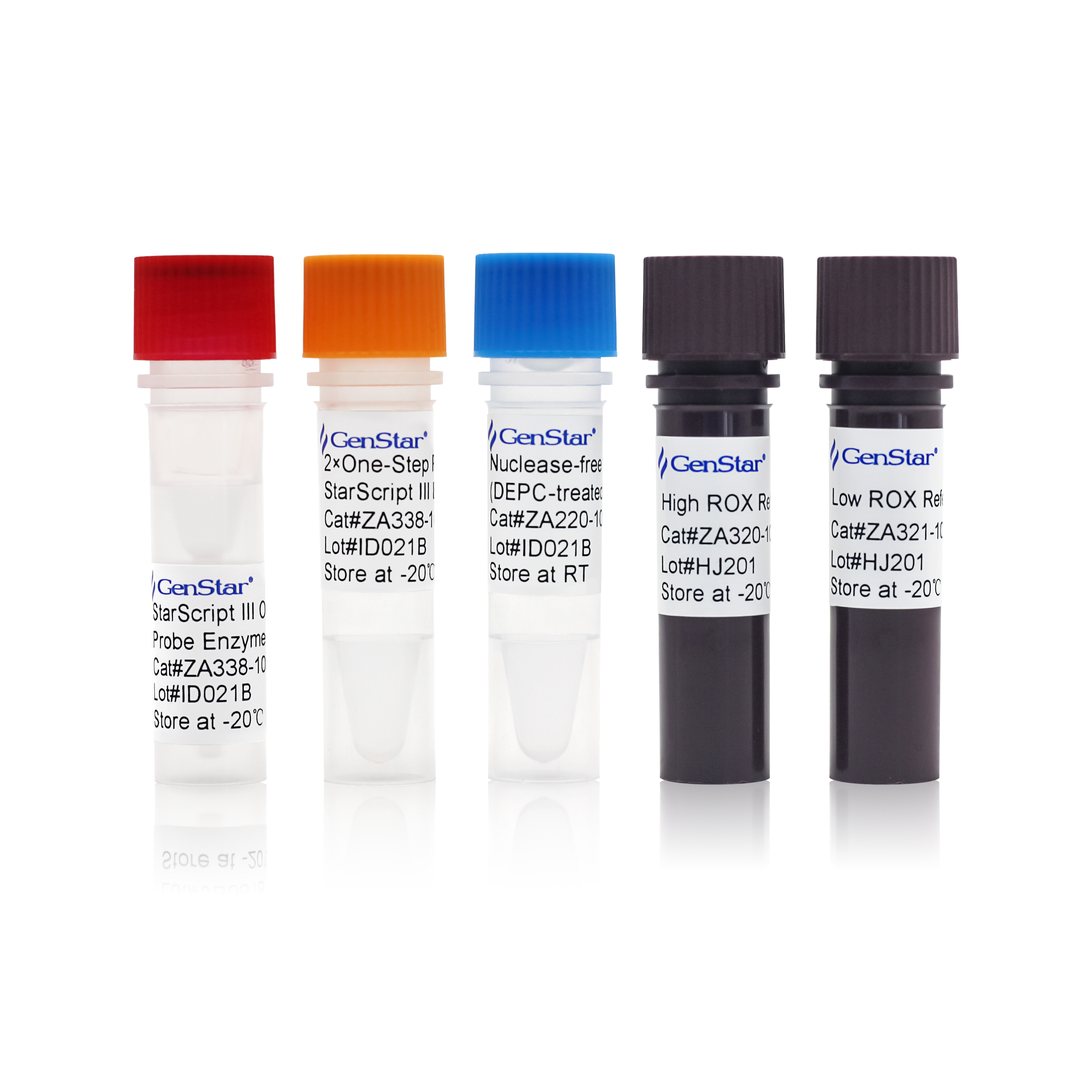 StarScript III One-Step qRT-PCR Probe Kit (UNG) 是采用探針法進行一步法反轉錄實時熒光定量檢測的專用試劑盒。使用本制品進行 Real Time RT-PCR 反應時以提取的 RNA 為模板,在同一反應管內連續(xù)進行反轉錄和熒光定量檢測,操作簡單,并能有效防止污染、降低加樣誤差。本產品內含高效的 StarScript III 反轉錄酶,熱穩(wěn)定性大幅度提高,可耐受高達 65℃ 的反應溫度。同時搭配抗體型 HotStart Taq DNA 聚合酶、配合優(yōu)化的 Buffer 體系,在提高檢測靈敏度的同時保證了擴增的特異性,非常適合于 RNA 病毒等微量目標基因的檢測。