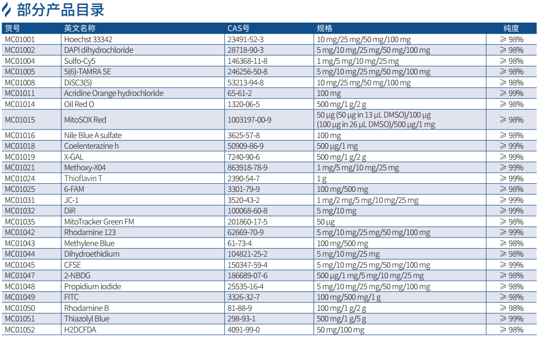 GenStar 目前擁有近 200 種熒光染料試劑,覆蓋細(xì)胞染色分析、動(dòng)物活體成像、生物偶聯(lián)、標(biāo)記化學(xué)等眾多熱門研究領(lǐng)域,具有靈敏度高,穩(wěn)定性好,熒光強(qiáng)度高等特點(diǎn)。