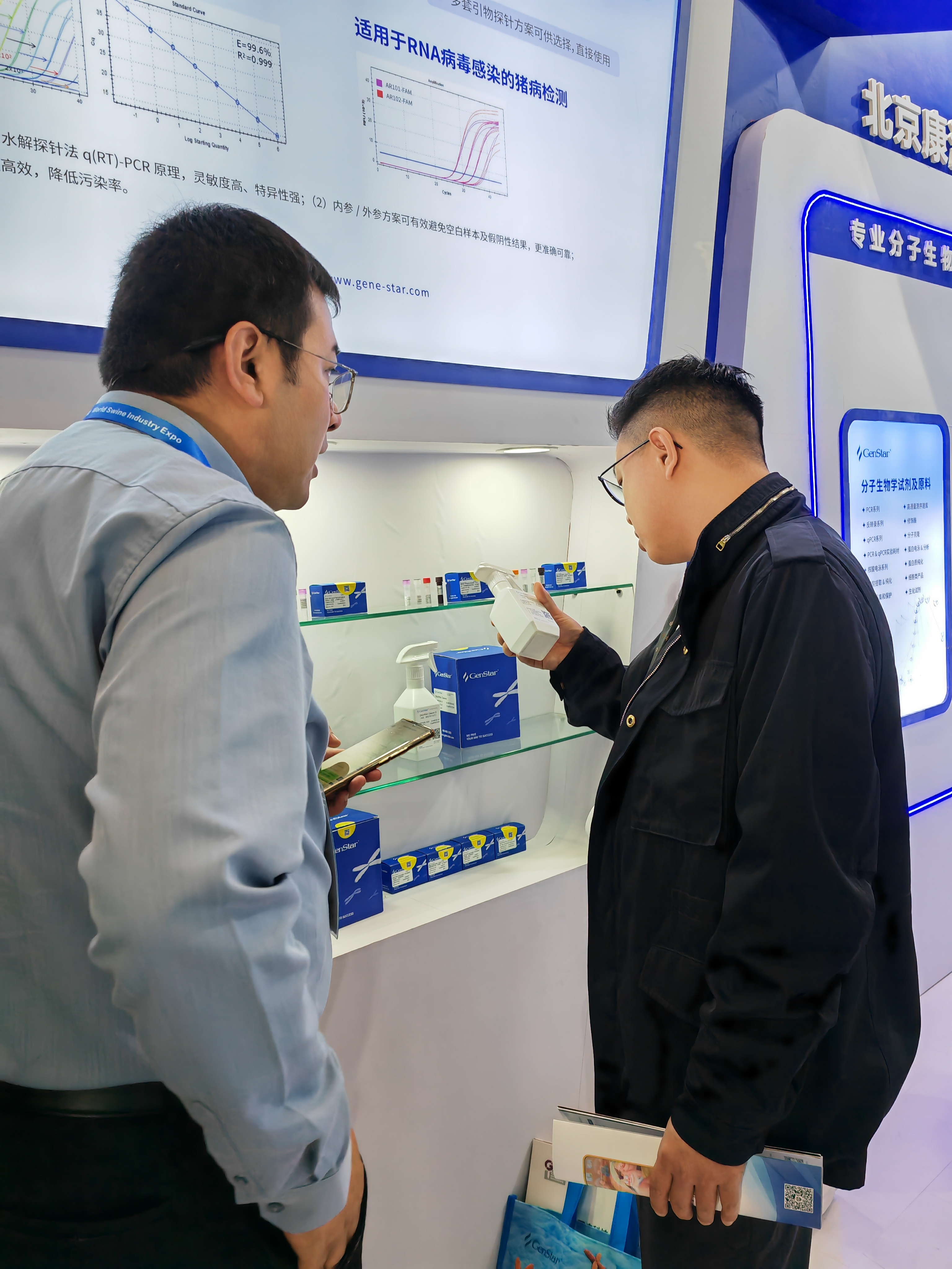 本次展會,GenStar集中展示了針對 DNA 病毒及 RNA 病毒檢測的探針法實時熒光定量 PCR 反應(yīng)預(yù)混液、試劑盒、酶原料等配套產(chǎn)品,可應(yīng)用于非洲豬瘟、豬藍(lán)耳、豬流行性腹瀉等豬病的科學(xué)研究,為 IVD 企業(yè)豬疫病檢測試劑盒開發(fā)提供原料。