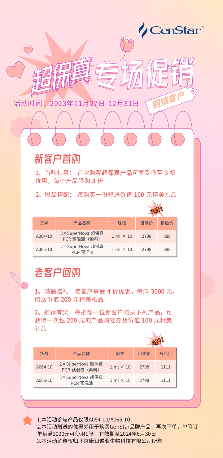 獲此殊榮,離不開廣大客戶的信任和支持,GenStar 特推出超保真產(chǎn)品終極感恩特惠購,和您共享這份榮譽(yù)和喜悅,與您共赴生命科學(xué)成功之路。