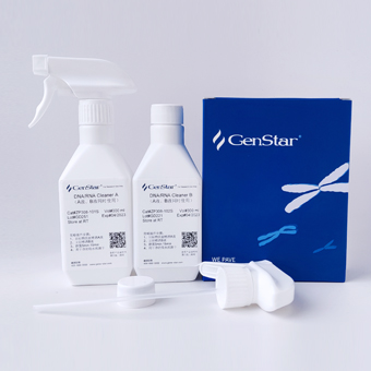 核酸(DNA/RNA)懸深顆粒,即氣溶膠污染物是導(dǎo)致 PCR 結(jié)果的假陽性原因之一。在分子生物學(xué)實(shí)驗(yàn)室中,核酸污染的清除是保證實(shí)驗(yàn)準(zhǔn)確性的有效措施。本產(chǎn)品由兩種單獨(dú)使用沒有毒性的溶液組成,混合后產(chǎn)生活性氧自由基,實(shí)現(xiàn)對核酸片段氧化降解,清除核酸(DNA/RNA)懸浮顆粒及物體表面核酸污染。本產(chǎn)品適用于生物實(shí)驗(yàn)室的清潔,通過對超凈臺面、實(shí)驗(yàn)墻面、移液槍外殼等污染累積的地方進(jìn)行噴涂擦拭,在短時間內(nèi)消除各種操作表面的高水平 DNA 及 RNA 污染,清除氣溶膠污染,消除細(xì)菌或病毒類污染。
