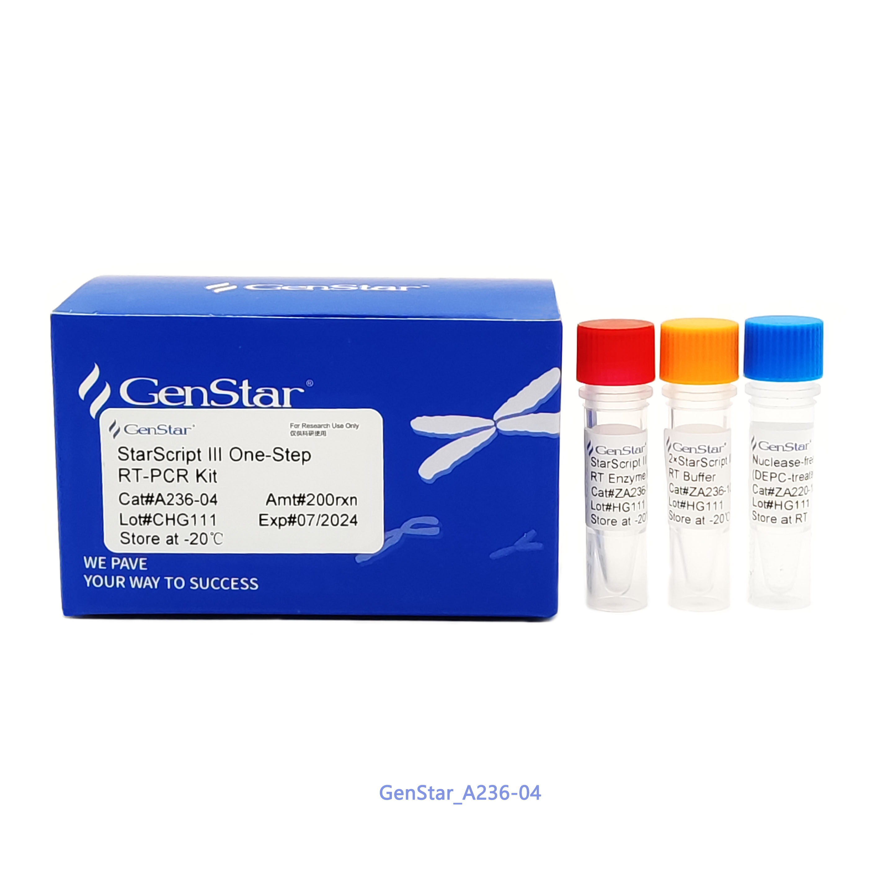 StarScript III One-Step RT-PCR Kit 是高效 cDNA 合成和 PCR 擴(kuò)增的一步法 RT-PCR 試劑盒,用于以 RNA 為模板,通過特異引物,反轉(zhuǎn)錄和 PCR 反應(yīng)均在一個(gè)反應(yīng)體系中完成,降低移液操作,減少操作誤差和污染風(fēng)險(xiǎn)。本產(chǎn)品包含了一步法 RT-PCR 反應(yīng)所必需的酶和反應(yīng)體系,整合 StarScript III Reverse Transcriptase 以及 Taq plus DNA Polymerase 的優(yōu)越性能,配合經(jīng)過優(yōu)化的緩沖體系,最大程度的減少了反轉(zhuǎn)錄酶對(duì)擴(kuò)增反應(yīng)的抑制,RT-PCR 檢測靈敏度可達(dá)到 1 pg 總 RNA。 反應(yīng)液中不含染料,PCR 程序結(jié)束后需要添加上樣緩沖液才能上樣電泳。
