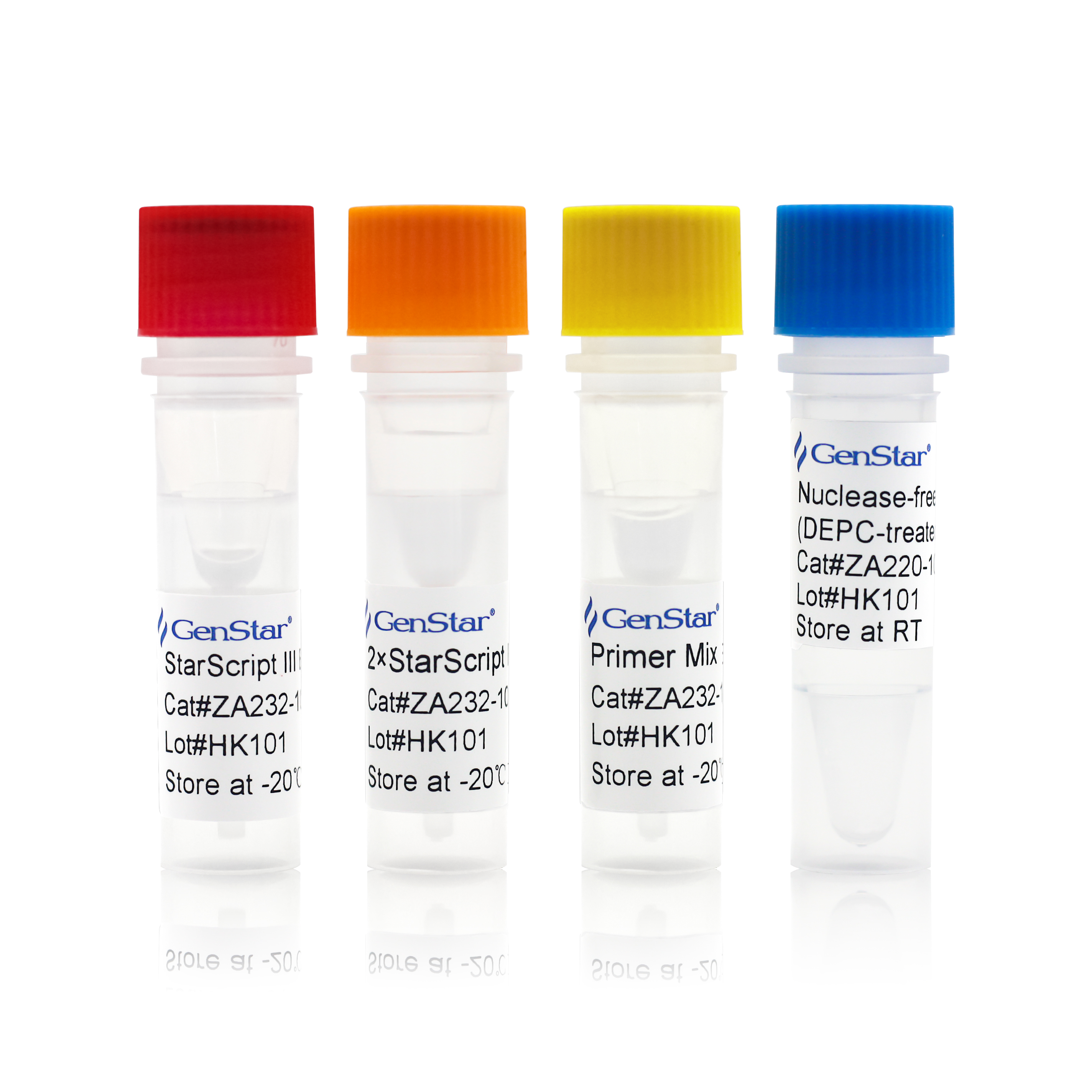 本試劑盒基于 StarScript III 反轉(zhuǎn)錄酶開發(fā)的 cDNA 第一鏈合成試劑盒。其中 StarScript III 反轉(zhuǎn)錄酶比 StarScript II 反轉(zhuǎn)錄酶具有更高的熱穩(wěn)定性,對(duì)于復(fù)雜二級(jí)結(jié)構(gòu)和 GC 含量高的 RNA 模板,可將逆轉(zhuǎn)錄溫度提高至 55-60℃,克服 RNA 復(fù)雜二級(jí)結(jié)構(gòu)對(duì) cDNA 合成的抑制,有效合成高質(zhì)量 cDNA;StarScript III 反轉(zhuǎn)錄酶 cDNA 合成能力更高,非常適合少量模板以及低拷貝基因的逆轉(zhuǎn)錄。
