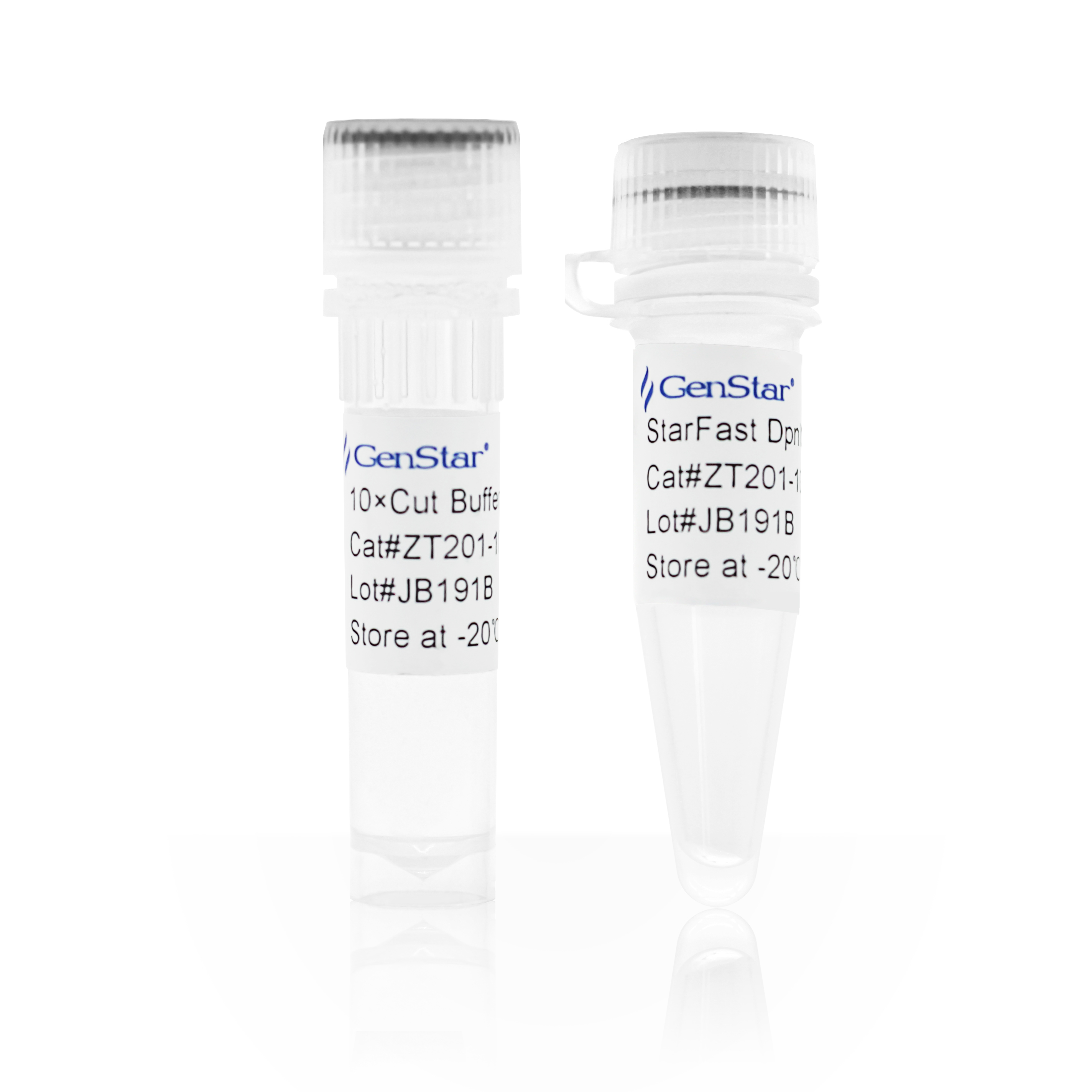 StarFast DpnI 是經(jīng)過基因工程重組的快速限制性內(nèi)切酶,適用于質(zhì)粒 DNA、PCR 產(chǎn)物或基因組 DNA 等的快速酶切。在 10×Cut 緩沖液中具有優(yōu)良的活性,能夠在 5-15 min 內(nèi)完成酶切。此外,去磷酸化、連接試劑在 10×Cut 緩沖液中均具有 100% 活性,支持一管化反應(yīng),提升“酶切-修飾-連接”的體驗(yàn)。