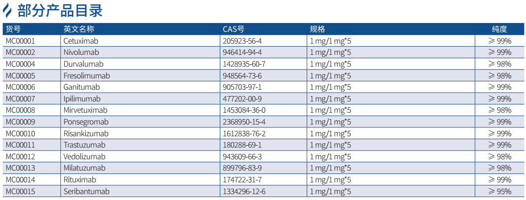 抗體抑制劑是一類能夠通過與特定抗原結(jié)合并阻斷其生物活性,從而抑制特定分子或細(xì)胞過程的抗體??贵w抑制劑具有與原始治療性抗體相同的活性生物成分,可作為陽性對照用于藥物效果評價等相關(guān)科學(xué)研究,同時也可以輔佐驗證靶點(diǎn)蛋白的功能活性。GenStar 現(xiàn)提供數(shù)百種抗體抑制劑助力科研工作者,包括鼠源抗體、嵌合抗體、人源抗體、雙特異性抗體等,涉及一些熱門靶蛋白 PD-L1、PD-1、VEGF、EGFR、HER2、TNF-α、CD20、Claudin18.2、CTLA4、CD3、CD47、4-1BB 等。