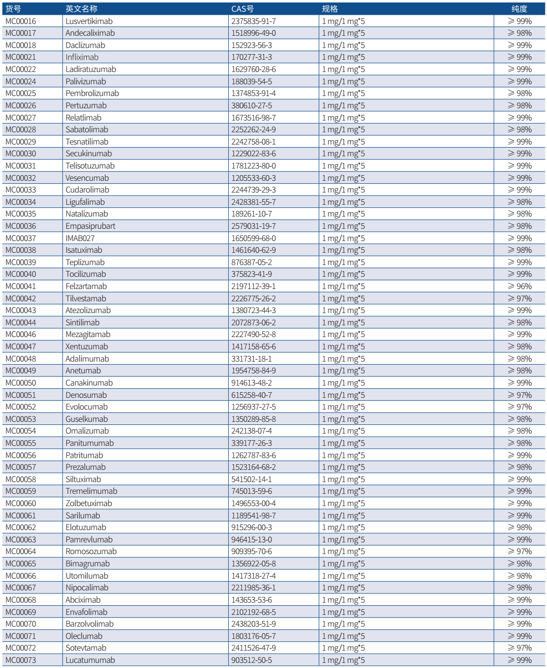 本界面只顯示部分產(chǎn)品信息,若想獲取更多小分子系列產(chǎn)品信息,請聯(lián)系我們銷售或致電技術(shù)支持熱線:400-666-3332