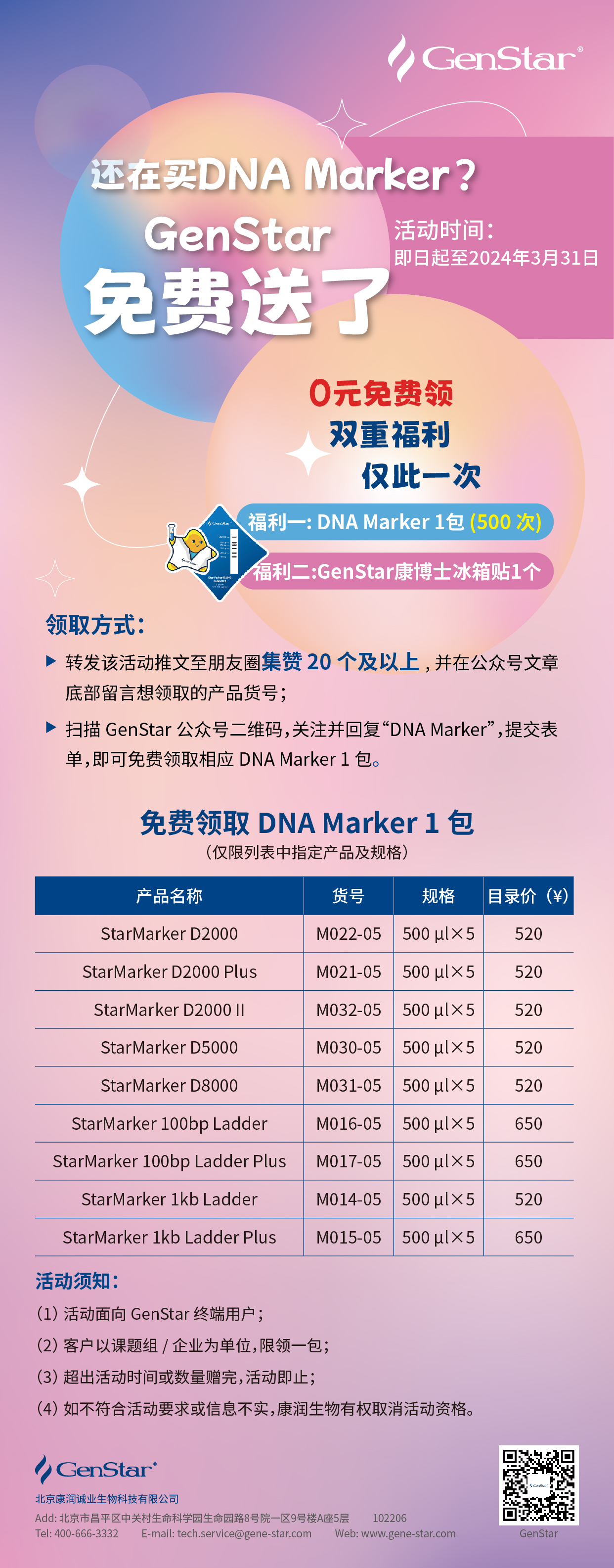 福利來襲 | 還在買DNA Marker?GenStar免費送了!